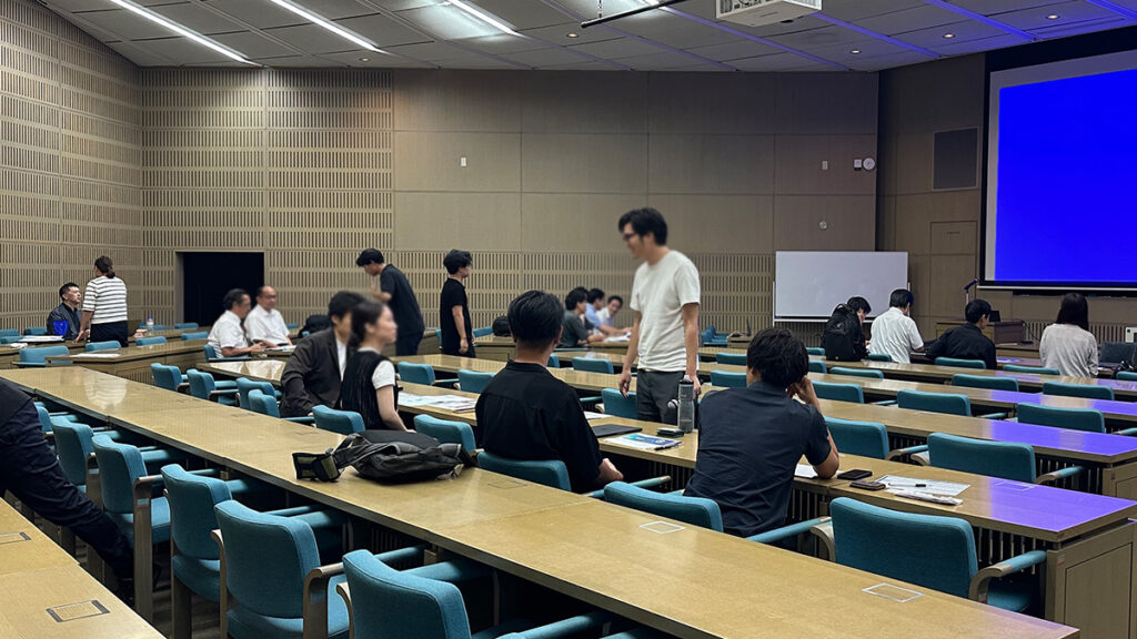 見学後、会場を東京都立大学・国際交流会館に移し、キックオフイベントが開始されました。本イベントの目的は、インフォシティグループを含む令和7年度に採択された開発プロモーター3社のお披露目と、過年度採択プロモーターとのネットワーキングおよび相互連携の促進です。