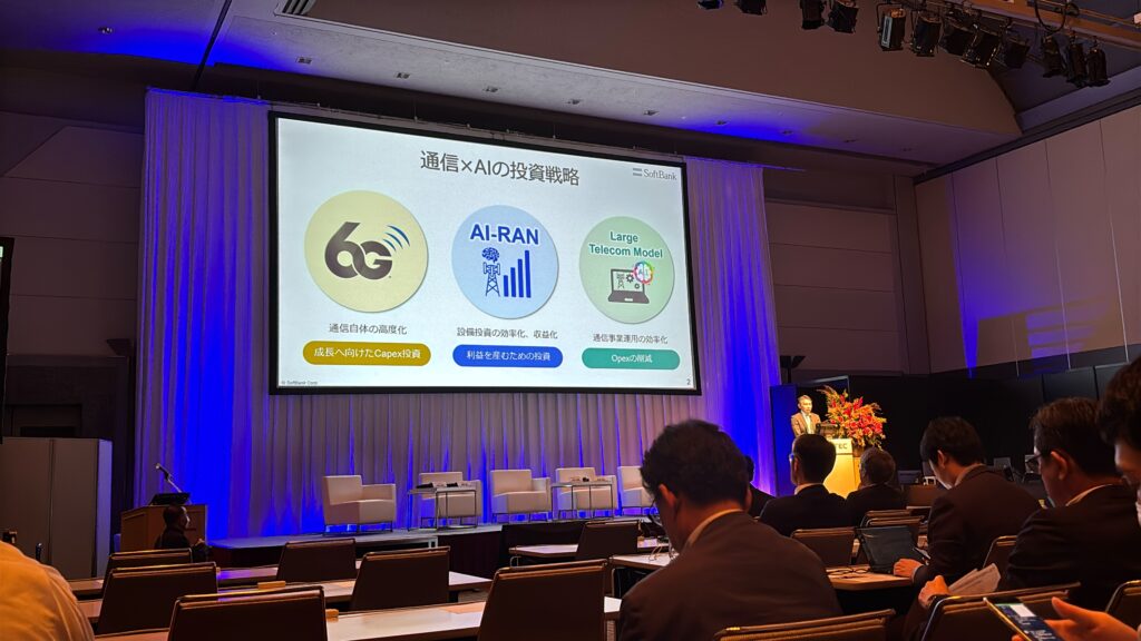 ソフトバンクのAIインフラ戦略を紹介。6G時代を見据え、AI処理能力を持つ基地局「AI-RAN」や通信分野に特化した大規模言語モデル(LLM)の開発など、AIを社会インフラとして活用するための野心的な取り組みを明らかにしました。