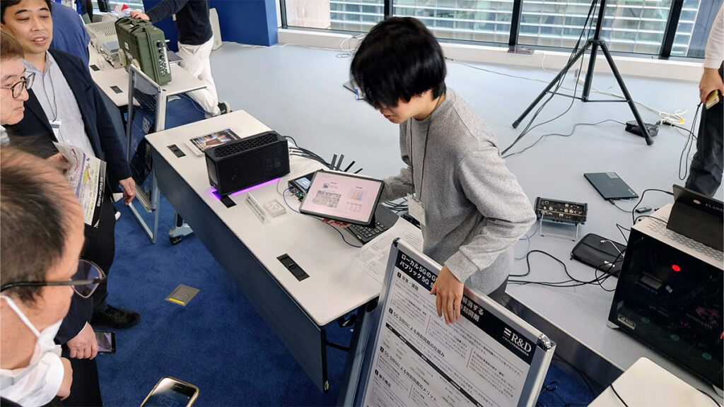 異なるベンダー間の接続性や、実際のユースケース(映像伝送、工場制御、AI活用など)における有効性を、同じ周波数帯・会場エリア内で相互に干渉対策を講じながら検証する、極めて実践的な場となりました。